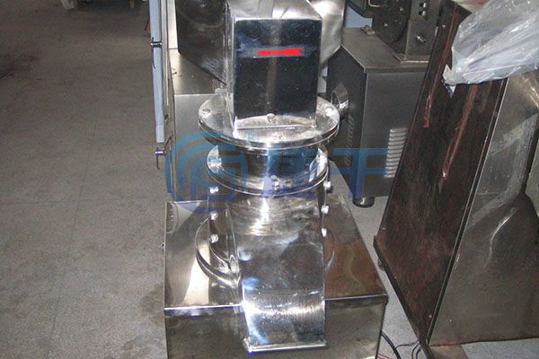 物料由进料斗送进粉碎室,经刀刃和刀座的冲击,旋转刀和固定刀同时剪切粉碎,由于受到旋转离心力的作用,物料自动从出口处流出。
