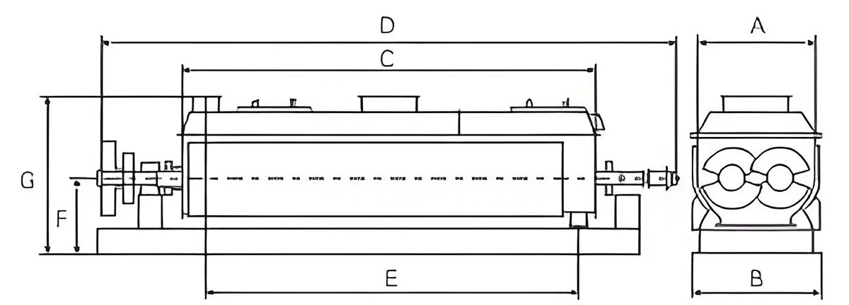 空心轴上密集排列着楔型中空桨叶,热介质经空心轴流经桨叶。单位有效容积内传热面积很大