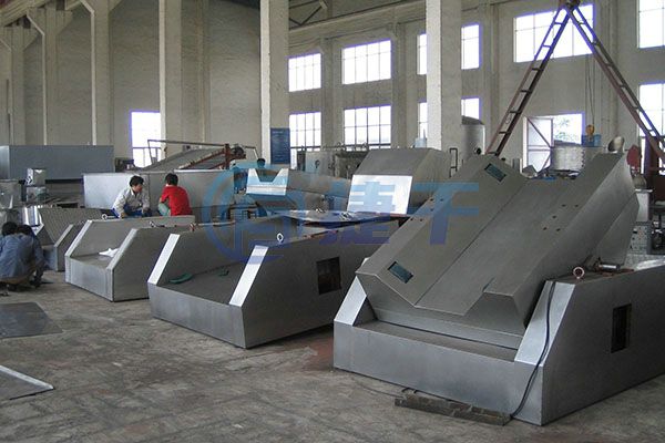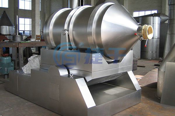 EYH二维混料机的转筒可同时进行二个运动,一个为转筒的转动,另一个为转筒随摆动架的摆动。被混合物料在转筒内随转筒转动、翻转、混合的同时,又随转筒的摆动而发生左右来回的掺混运动,在这两个运动的共同作用下,物料在短时间内获得充分的混合。EYH二维混料机适合所有粉、粒状物料的混合。