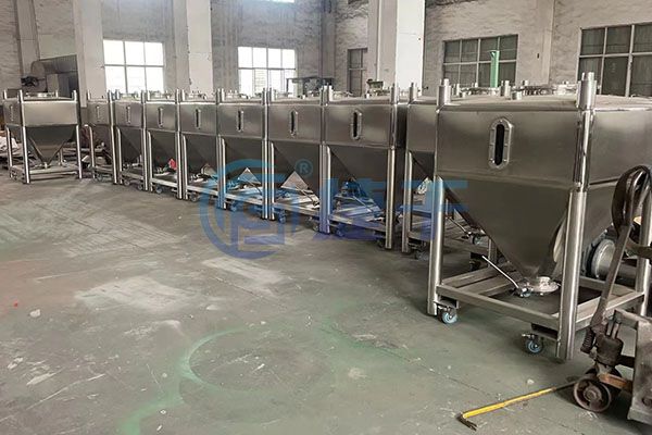 方形圆角粉体移动料仓(粉体周转料斗/粉体周转罐)于粉体密闭暂存及粉料周转,粉料储存安全、不受潮,有效防止粉尘污染,适用于制药、食品、能源、塑料、化工等粉体行业。